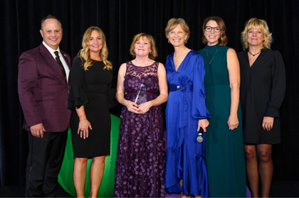 Pictured L to R: John Bork, Chief Executive Officer, Learning Care Group; Tracie Wickenhauser, Chief Operating Officer, Learning Care Group; Charlene Hough, Lead Teacher at The Children’s Courtyard in Plainfield, Illinois; Dr. Johnna Weller, Chief Academic Officer, Learning Care Group; Amber Horton, Division Vice President, Learning Care Group; Shannon Ventittelli, Division Vice President, Learning Care Group